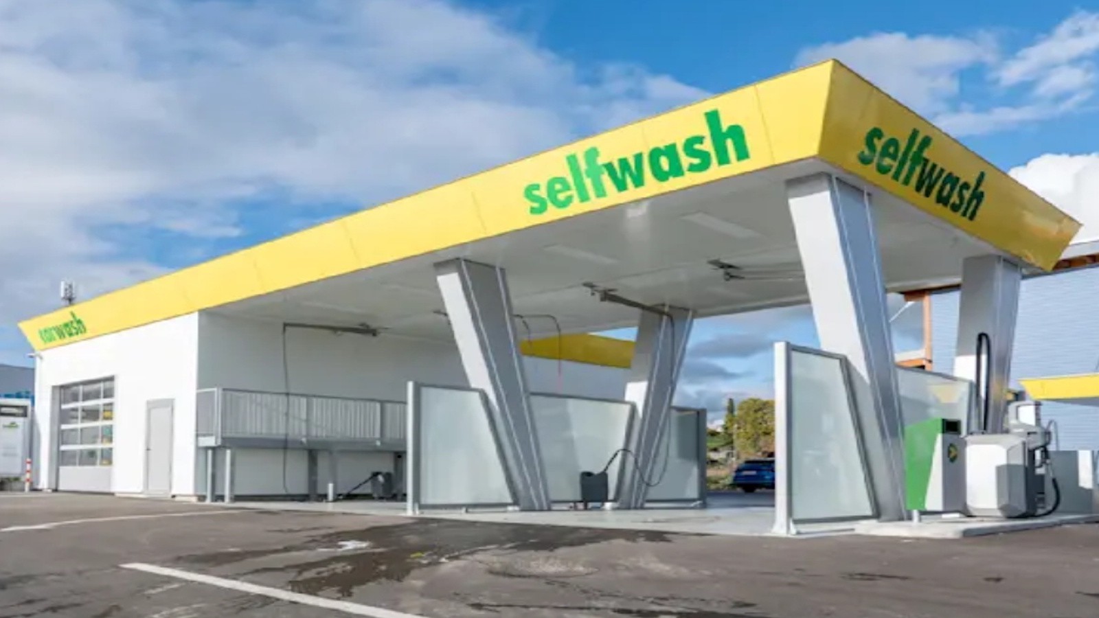 Praktische selfwasch Boxen z.T mit Podest einfache Dachreinigung, Münzwechsler und Geldautomat, auch für grosse Womos