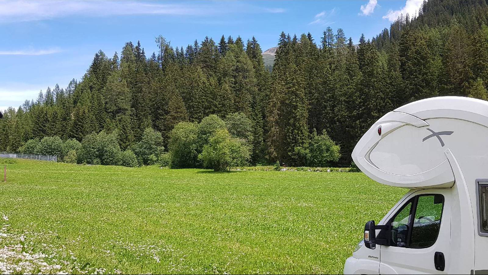 Zwei ruhige Stellplätze auf einem Bauernhof beim Landwasser. Voranmeldung erwünscht. Der Preis ist inkl. Kurtaxe. Diese beinhaltet die "Davos Klosters Premium Card", mit der kostengünstig alle Bergbahnen und gratis die öffentlichen Verkehrsmittel in der Destination Davos Klosters benutzt werden können.