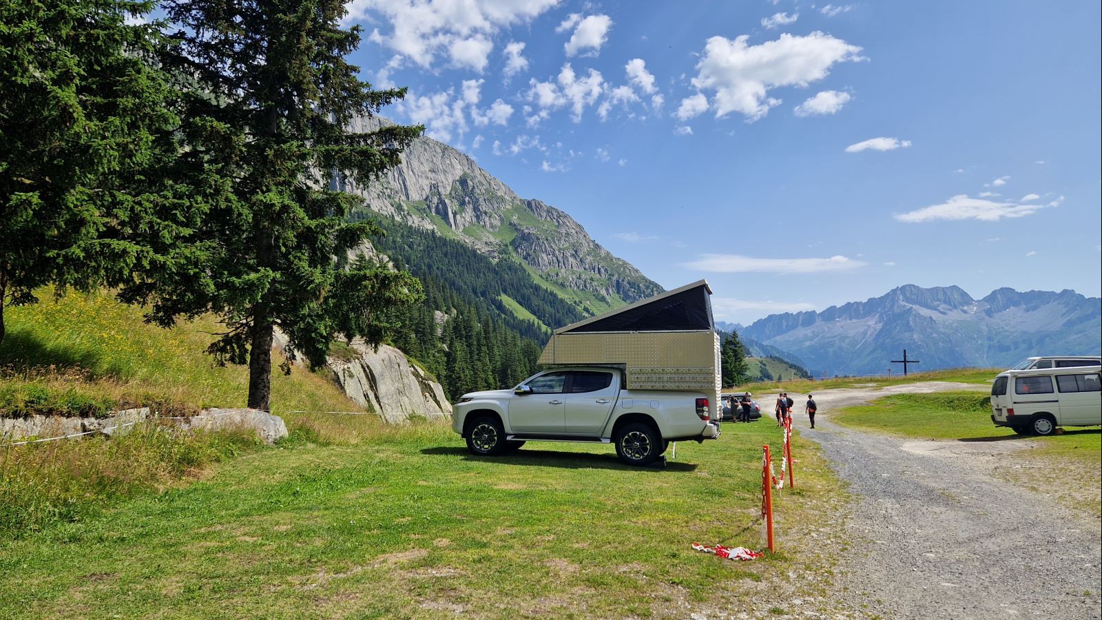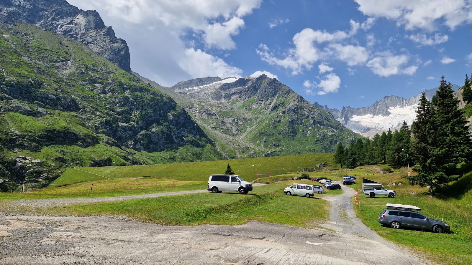 Beim Bergrestaurant stehen 2 Stellplätze mit Strom zur Verfügung für 40.-. Daneben weitere 6 Stellplätze ohne Strom. WC-Anlage bei der Busstation kann benutzt werden. Am Wochenende für Wohnmobile nicht ideal, besser unter der Woche besuchen, man hat mehr Platz zum Parkieren. Die Bergstrasse ist eindrücklich und problemlos zu fahren. Samstag oder Sonntag Nachmittag vielleicht besser nicht bergwärts fahren, da dann alle Wanderer mit dem PW talwärts fahren, kreuzen ist nicht überall möglich. Keine Markisen stellen, Stühle und Tische dürfen aufgebaut werden. Die offiziellen Plätze sollten reserviert werden.