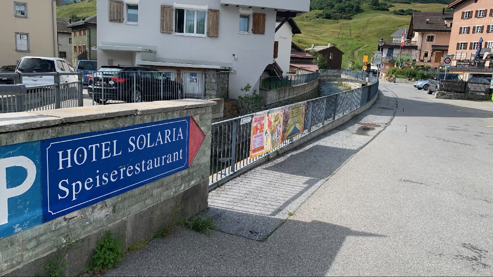 " Kleiner Stellplatz hinter dem Hotel Solaria. Beim Hotel kann man auf der schönen Terrasse essen gehen. Sehr nettes Personal. Strom mit dem SchweizerStecker. "