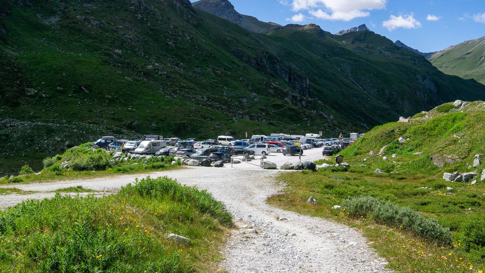 " Grosser Kies-Parkplatz hinter dem Lac Moiry. Es gibt 7 für WoMos reservierten Plätze und ganz viele andere. Nach Tafel ist auch campieren etwa 200m entlang der Strasse und auf einer flachen Wiese gerade vor dem Parkplatz erlaubt.Super Aussicht in die Berge und guter Ausgangspunkt für Wanderungen. Man hört nur das Rauschen des Bach und ev Kuhglocken. Wegen Bergen geht die Sonne aber spät auf und früh unter.WC ist im Moment "Out of Order" (22.8.21)Dieser Platz kostet wie die anderen im Val d'Anniviers Fr 15 und Fr 4 Kurtaxe pro Erwachsener, Kinder Fr 2 "