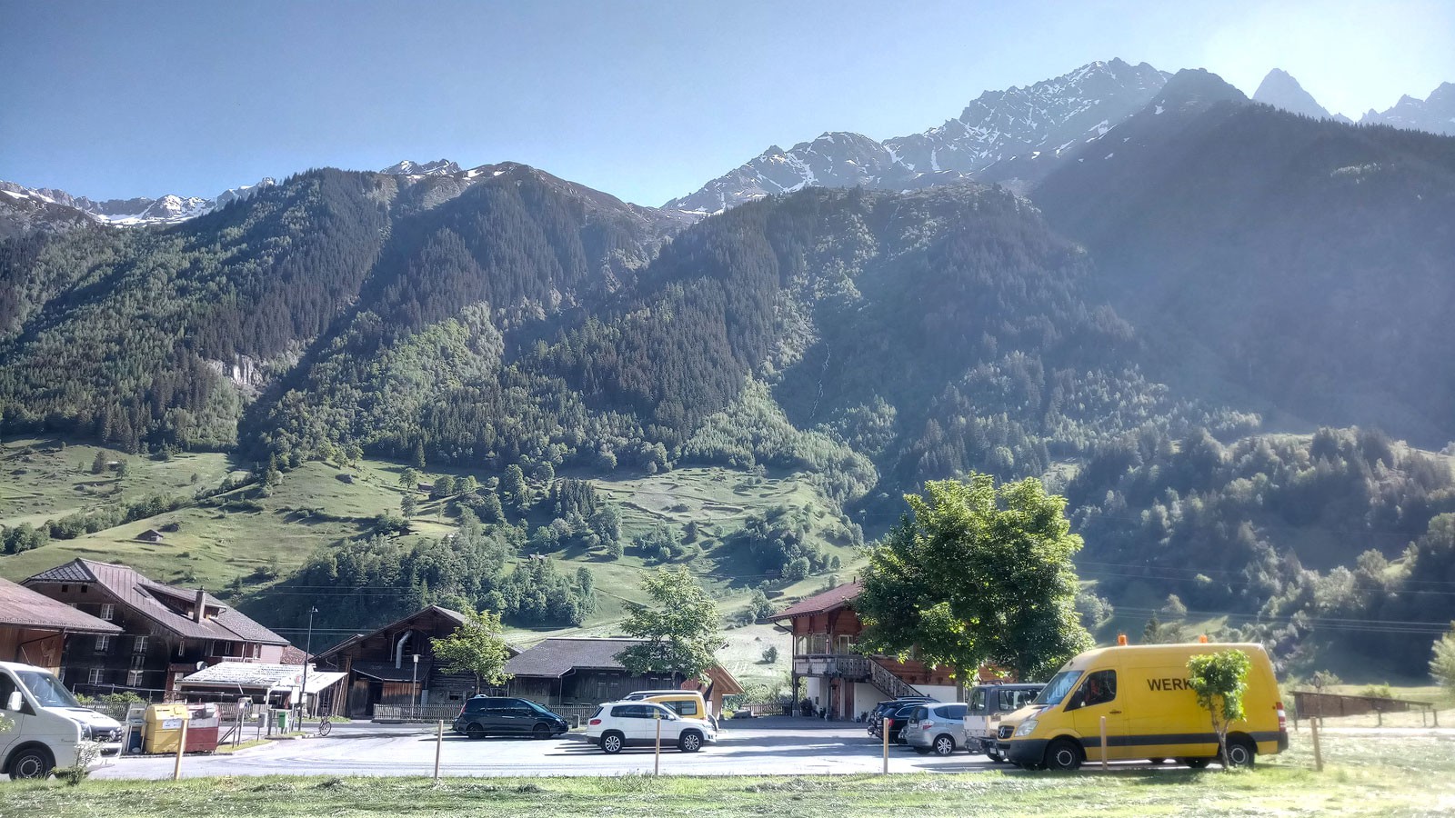 Parkplatz am Dorfausgang Richtung Grimselpass.