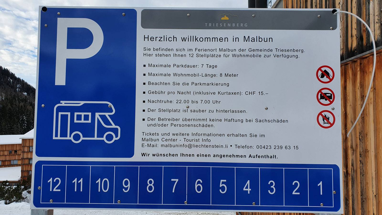Bei der Anfahrt zwischen Triesenberg und Steg muss durch einen geraden Tunnel (max. Höhe 3.80m) gefahren werden, wo es mit dem Wohnmobil eng bei Gegenverkehr wird. Die Einheimischen wissen das und es wird meistens auf der andern Seite dann die Ampel auf rot gestellt. Einfach etwas Vorsicht, ist im Grossen und Ganzen aber problemlos zu meistern.