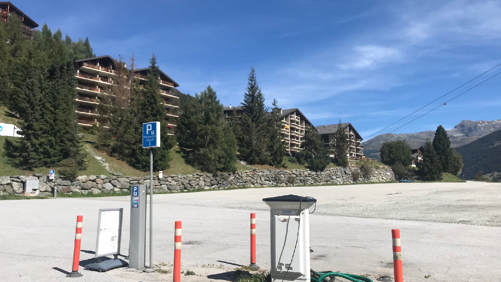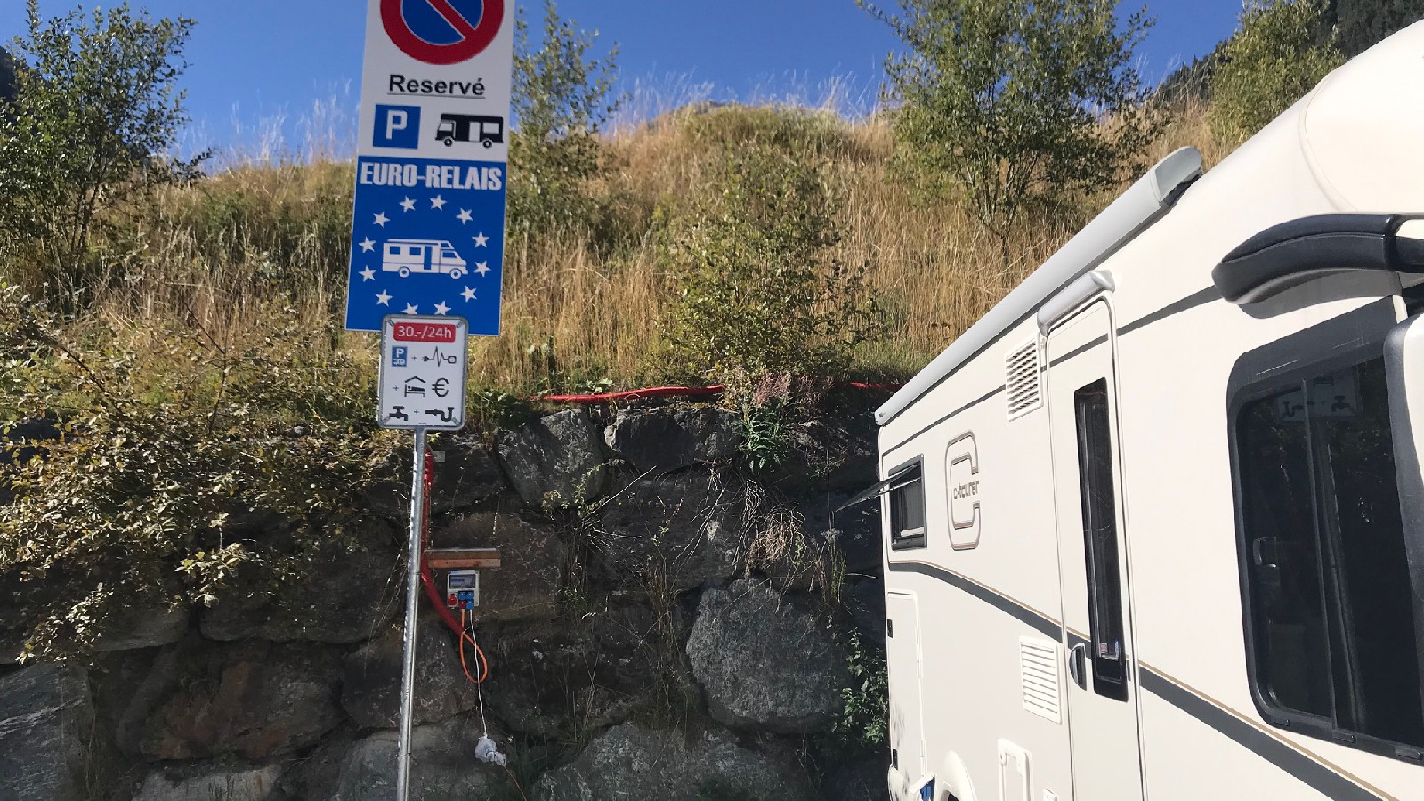 " Quiet location, but still all village facilities around the corner. Tarmac ground for the campers. Euro Relais water/wc/electricity (2) and 8 other electricity points. Euro Relais drinking water comes out with enormous pressure, so beware of wet feet.Police checks payment (payment online or at tourist office - to get tourist discounts for ÖV and cable car). We paid CHF23 per night in Summer season for camper + 2 adults. In Winter it's a higher price. 4 stars because the Euro Relais facility is rusty and drinking water comes out like crazy. "