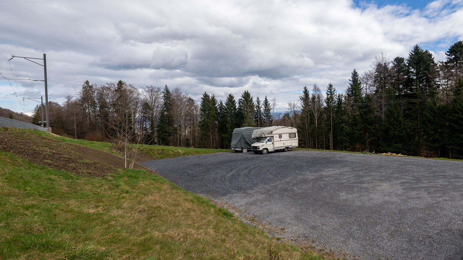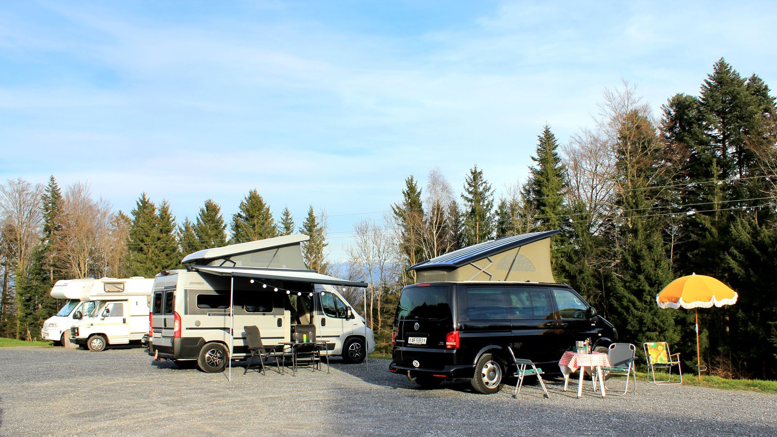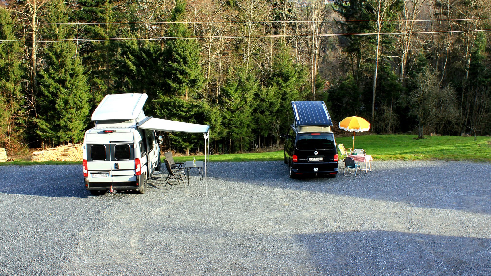 Der Stellplatz bietet ausreichend Platz für fünf Camper mit Klappstuhlverhalten.