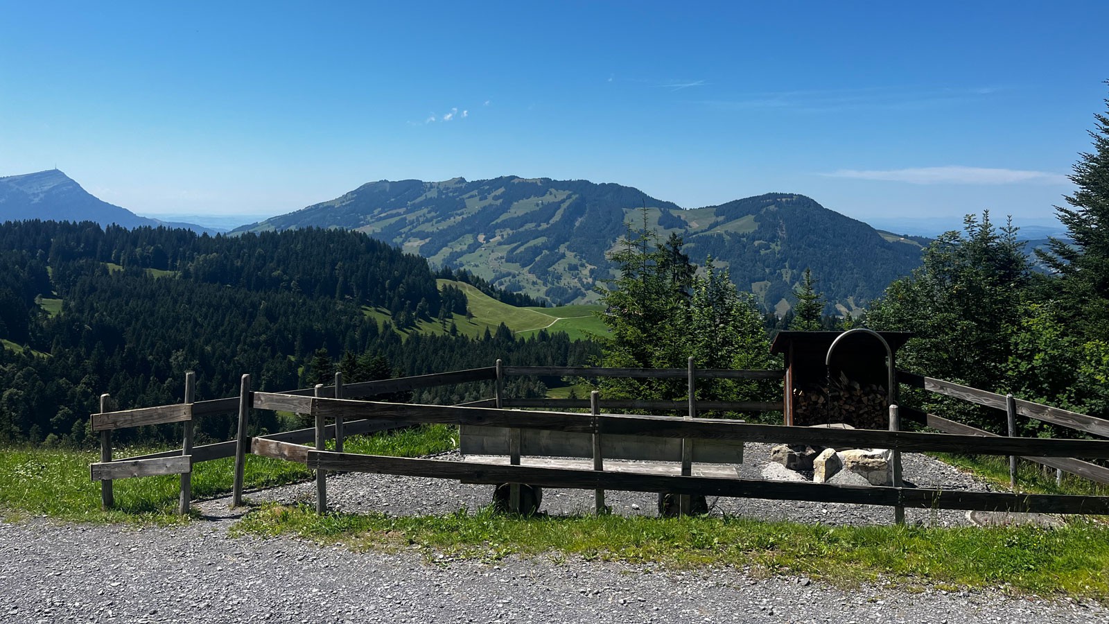 Der Stellplatz befindet sich mittendrin auf der Alp Stuckli. Bei schönem Wetter sind Sonnenuntergänge und Morgenrote keine Seltenheit. Die Aussicht vom Stellplatz ist sagenhaft. Vor allem die 20-minütige Wanderung zum Aussichtspunkt Hochstuckli lohnt sich!