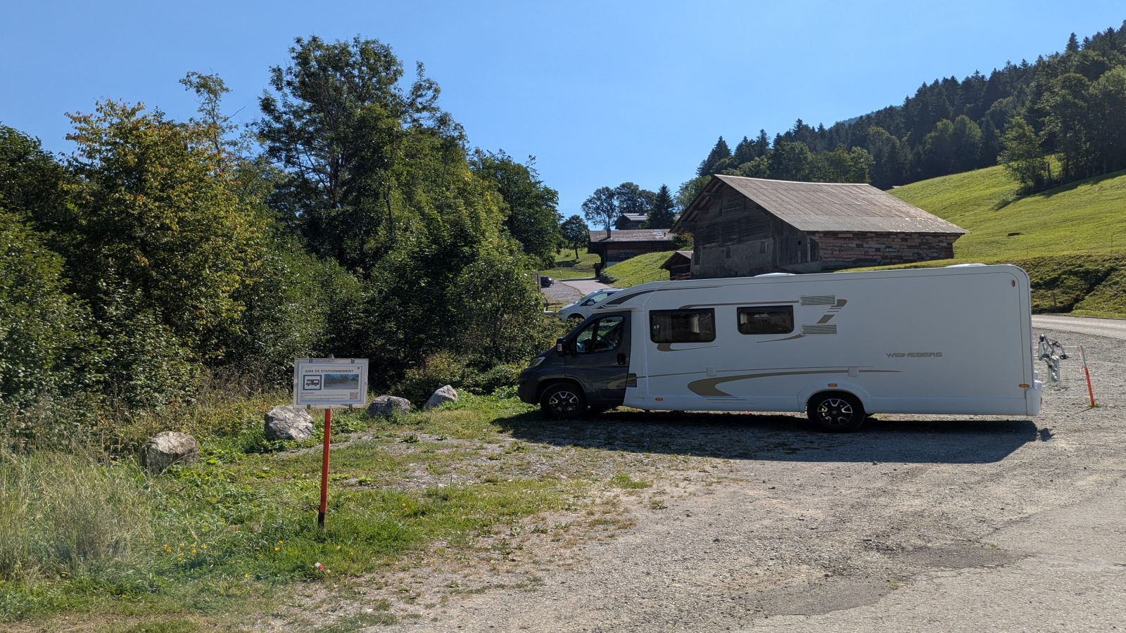 Kleiner Platz für Wohnmobile links vom Eingang zum großen Parkplatz der Seilbahn. Ideal, um zur Videmanette hinaufzufahren und schöne Wanderungen in der Region La Pierreuse zu unternehmen (Achtung: Hunde sind im Naturschutzgebiet auch an der Leine verboten). Das wunderschöne Dorf Rougemont ist 500 m zu Fuß entfernt. Sehenswert sind die herrlichen alten Chalets und die Kirche. Schöne Radtouren in Richtung Château d'Oex auf der Route Nr. 9. Vor Ort sind keine Dienstleistungen verfügbar, aber etwa 2 km in Richtung Saanen beim ARA-Gebäude besteht die Möglichkeit, Abwasser zu entsorgen und Wasser aufzufüllen.