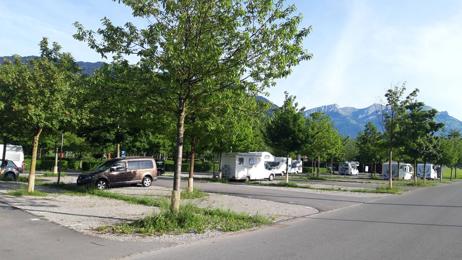 " Übernachtung auf dem grossen Parkplatz ohne Strom, praktische Ver- und Entsorgung im Campingplatz. "