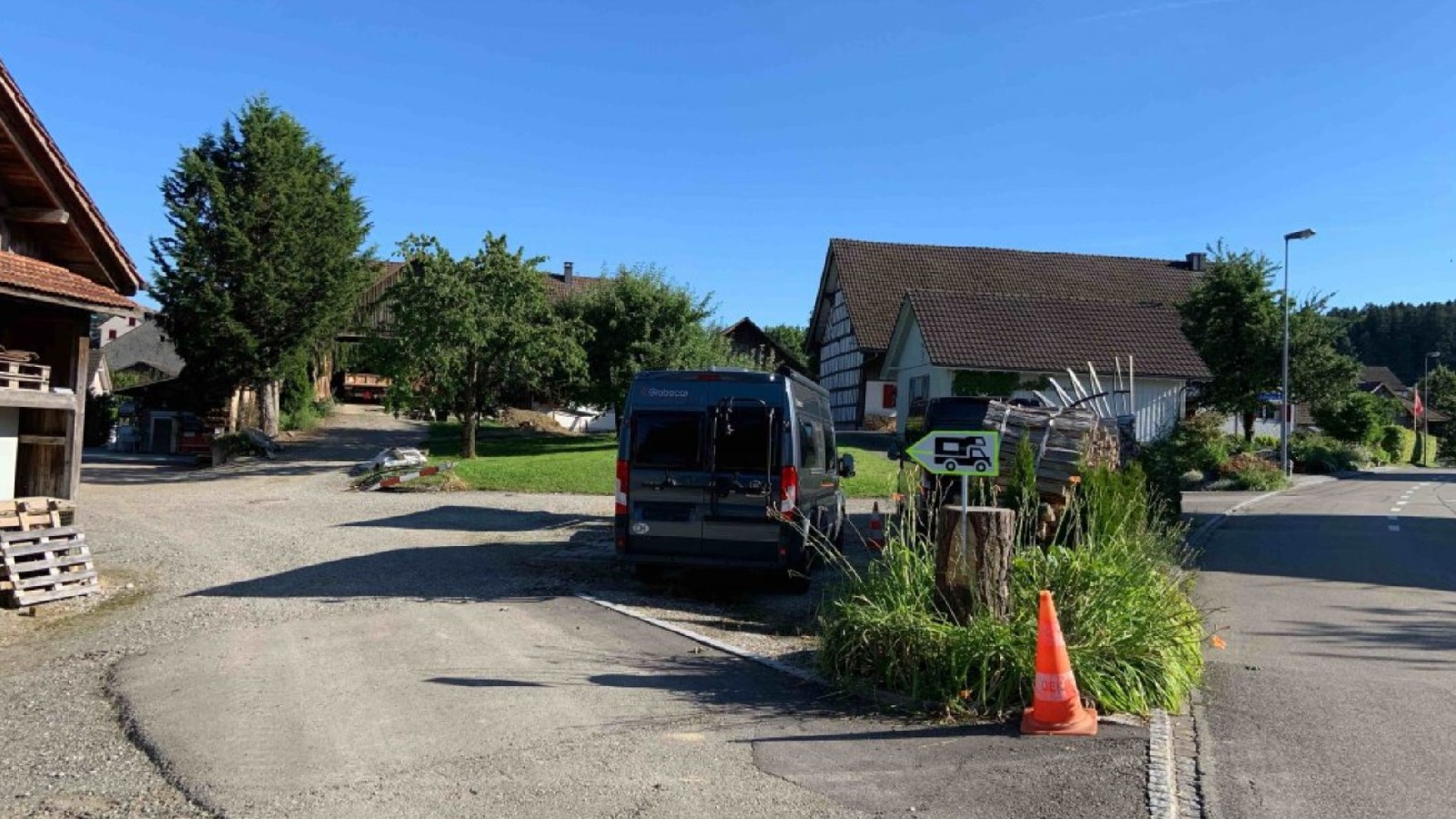 Stellplatz bei Camperfreund auf einem Energiehof. 1 Km von der Autobahnausfahrt Matzingen. 2 einfache Gaststätten im Dorf. Einkaufen, Apotheke, Tankstelle, Hallenbad, Bahnhof in Aadorf (3Km). Sitzplatz mit Grillstelle steht zur Verfügung.